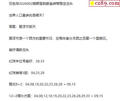 > 26年福彩双色球002期 群星脑筋急转弯定龙头字谜