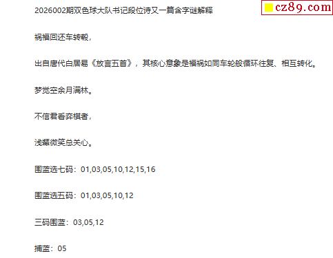 26年福彩双色球002期 大队书记段位诗另一篇